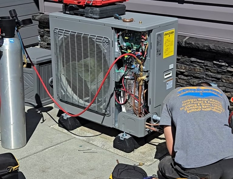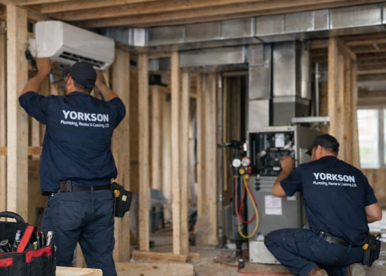 Routine maintenance keeps your heat pump and furnace operating safely, efficiently, and reliably year-round. At Yorkson Plumbing, Heating & Cooling Ltd., our maintenance service includes inspecting and cleaning indoor and outdoor components, checking refrigerant levels and system pressures, testing electrical connections and safety controls, verifying thermostat accuracy, measuring airflow and temperature performance, inspecting heat exchangers and burners on gas furnaces, confirming proper gas pressure and venting, clearing condensate drains, and ensuring all critical components are functioning within manufacturer specifications. Regular servicing helps improve energy efficiency, reduce unexpected breakdowns, extend equipment lifespan, maintain warranty coverage, and ensure safe operation—protecting your comfort and your investment.